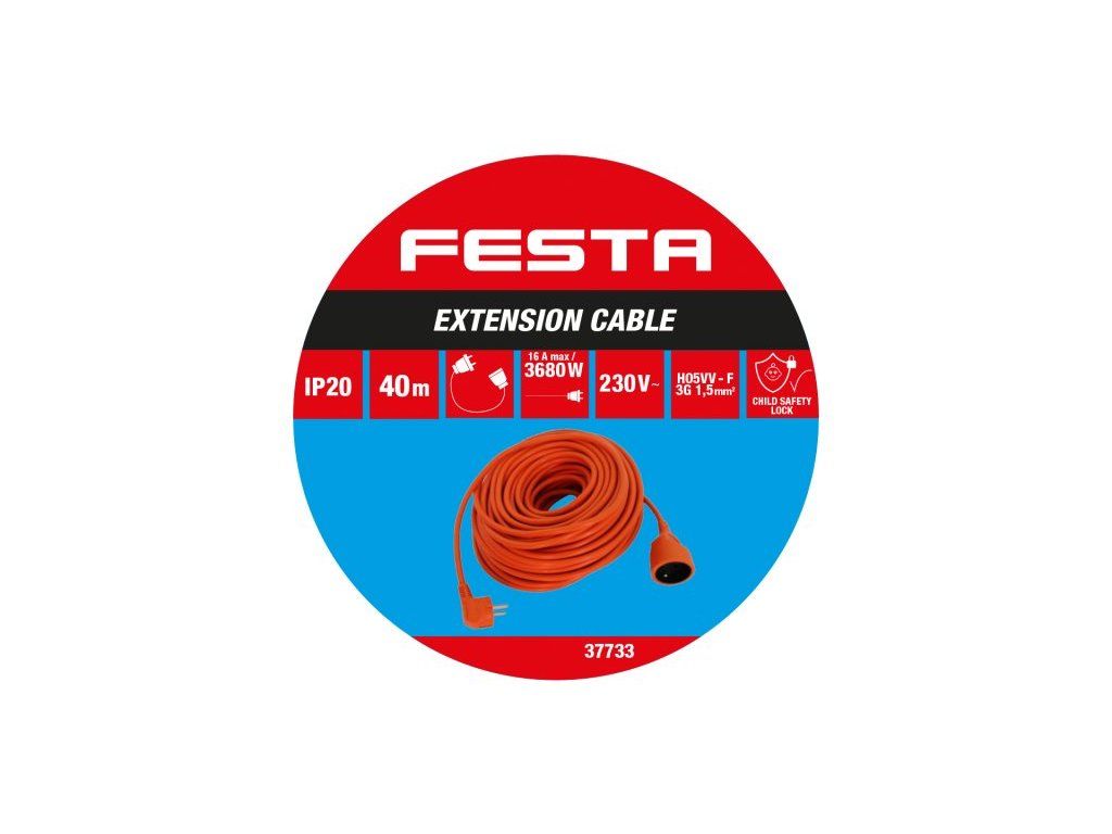 Kábel predlžovací FESTA 3x1.5mm 40m 230V max.3680W IP20