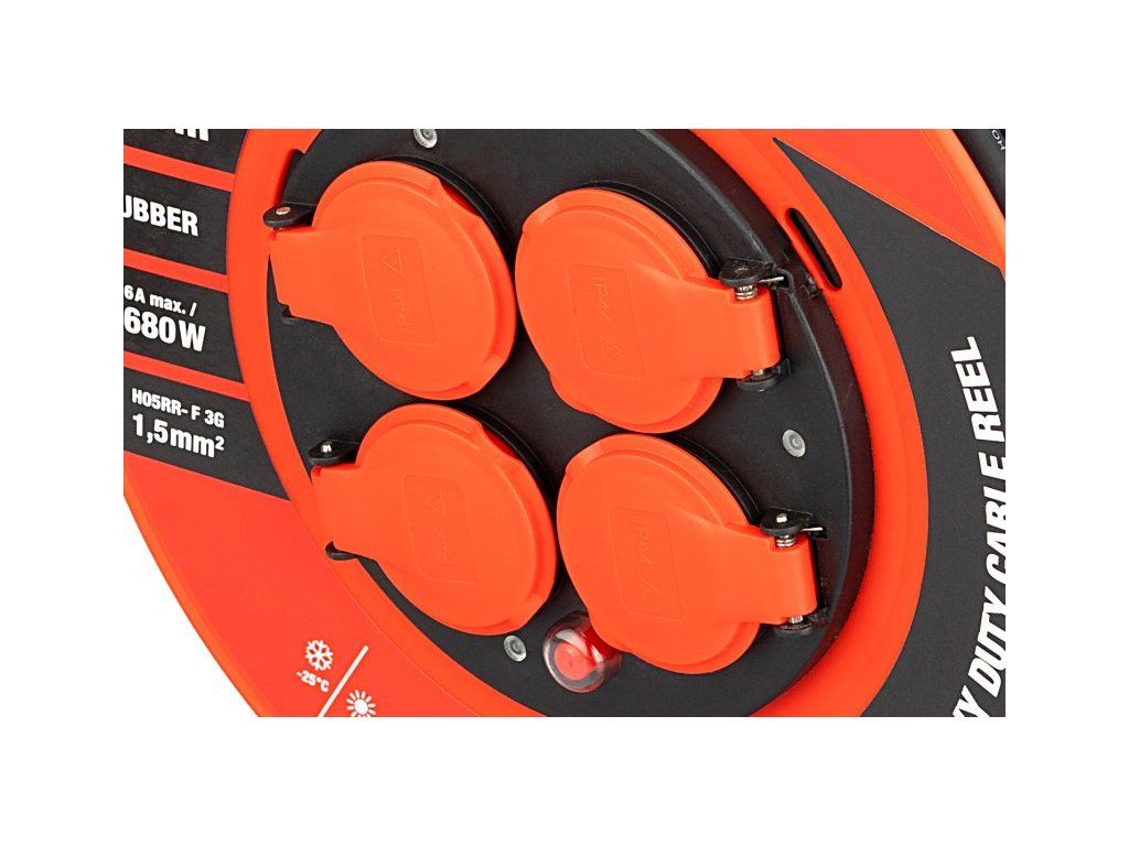 <ul style="color: red"> <li type="square"><span style="color: black"> prodlužovací kabel na bubnu se 4mi zásuvkami 3 x 1,5 mm na 230 V, pro venkovní použití</li> <li type="square"><span style="color: black"> <b>maximalní zatížení - rozvinutý buben 3680 W (16 A) / navinutý max 1100 W (4,8 A)</b></li> <li type="square"><span style="color: black"> odolný materiál vnější izolace pro náročné podmínky na stavbách i jiných provozech</b>, odolová olejům</li> <li type="square"><span style="color: black"> průřez jednotlivých vodičů 3 x 1,5 mm s gumovou izolací</li> <li type="square"><span style="color: black"> <b>krytí IP44 - odolné proti hrubému prachu a stříkající vodě</b></li> <li type="square"><span style="color: black"> kovová, masivní konstrukce bubnu pro snadnou manipulaci a stabilní instalaci, cívka bubnu z kvalitního odolného ABS plastu</li> <li type="square"><span style="color: black"> tepelná pojistka proti přehřátí</li> </ul>Dodatočné parametre
