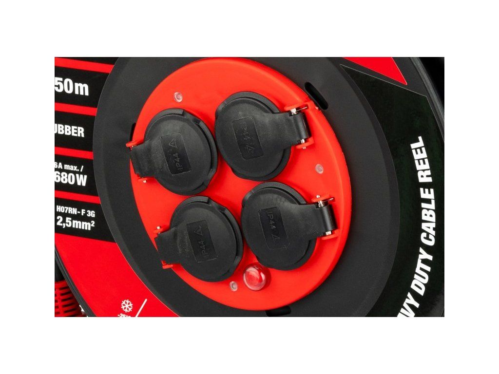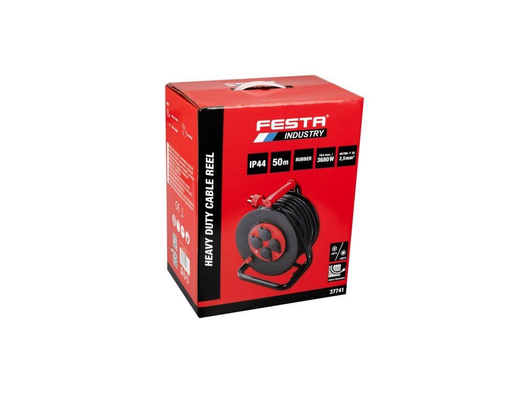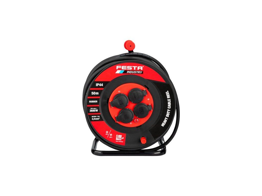 Kábel predlžovací na bubne vonkajší FESTA INDUSTRY 3x2.5mm 50m 230V max 3680W 4 zásuvky guma-neoprén IP44