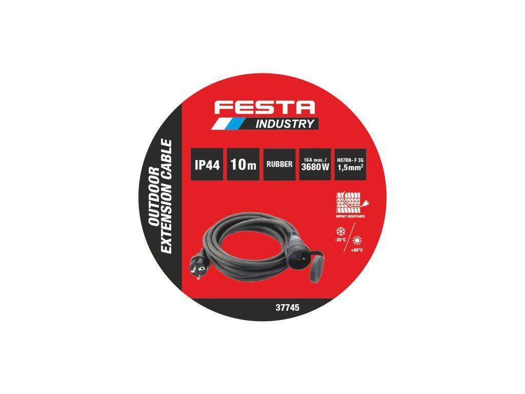 Kábel predlžovací vonkajší FESTA INDUSTRY 3x1.5mm 10m 230V max 3680W guma-neoprén IP44