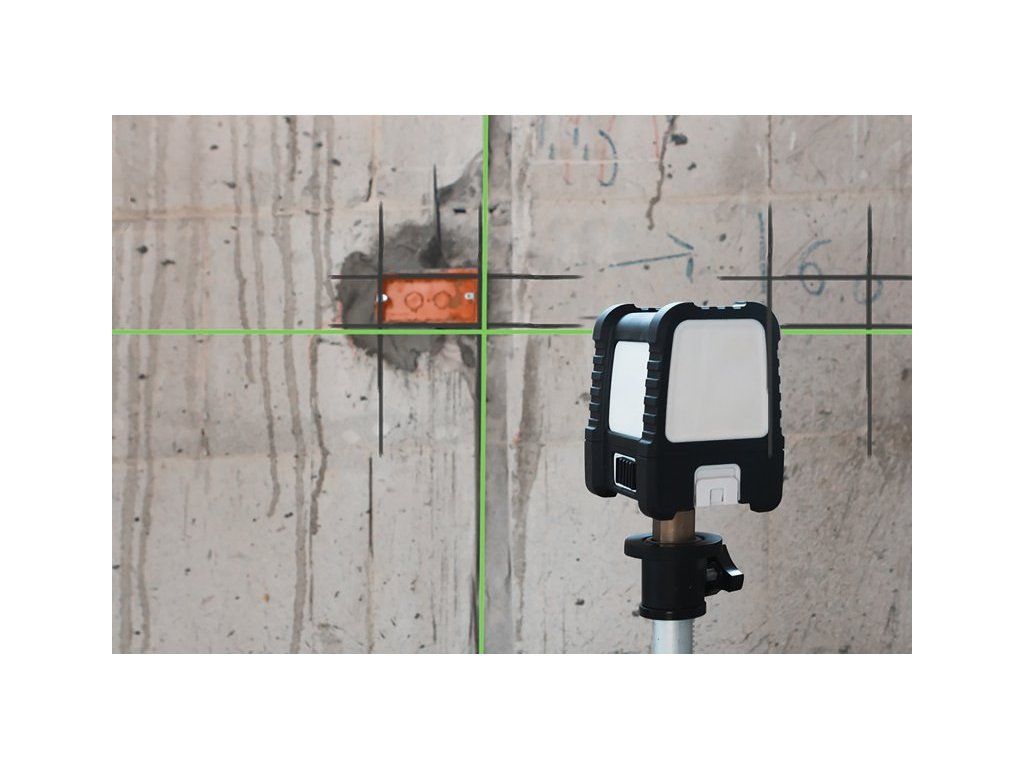 - samostatně stojící křížový laser se zelenými paprsky pro vnitřní i venkovní použití - výhoda zeleného paprsku je hlavně velším dosahu paprsků a ve výrazně lepší čitelnosti i bez rozjasňujících brýlí (27676) - efektivní nástroj pro profesionální stavebníky, sádrokartonáře, malíře, dekoratéry - účinný dosah paprsků s přesností +/- 0,2 mm/m - při vnitřním použití až 30 m - při použití venku v pulzním režimu s detektorem (27671) až 60 m - horizontální a vertikální paprsky protínající se v úhlu 90° - rozsah samonivelace +/- 3% s vizuální i zvukovou signalizací (mimo samonivelaci) - možnosti upevnění - pevné výklopné nohy s možností nastavení výšky a sklonu, na stativ závit 1/4" - snadná obsluha laseru i v rukavicích - nárazuvzdorný kryt s gumovými ochrannými prvky s odolností vúči vodě a prachu IP65 - včetně pouzdra a adapteru se závity 1/4" - 5/8" (27669), univerzálního držáku na stěnu, baterií 3xAA - pro lepší čitelnost paprsků lze použít 27676 - Rozjasňující brýle, 27673 Magnetickou cílovou destičku - přenosy výšek a roviny, zaměření a montáže příček, nivelace podlah, zaměření a instalece oken a dveří atd...Dodatočné parametre