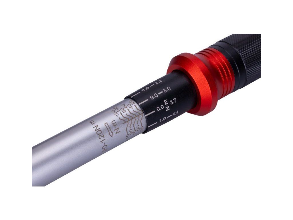 <ul style="color: red"> <li type="square"><span style="color: black"> momentový klíč s ráčnou na hlavice 3/8"</li> <li type="square"><span style="color: black"> nastavitelný rozsah utahovacího momentu - <b>20 - 120 Nm</b></li> <li type="square"><span style="color: black"> <b>tělo klíče z kvalitní CrV oceli</b>, ráčnový mechanizmus z <b>vysoce odolné Cr-Mo oceli</b></li> <li type="square"><span style="color: black"> otáčením rukojeti nastavíte požadovaný moment, jakmile při utahování dosahne klíč mastaveného momentu, dojde k prokluzu klíče a šroub nebo matice je dotažena správným momentem</li> </ul>Dodatočné parametre