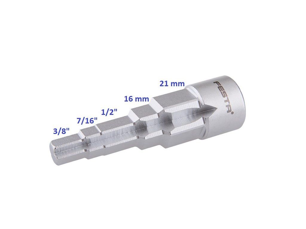 Klíč na radiátorové šroubení FESTA je univerzální klíč pro montáž a demontáž radiátorových dílů s uchycením pro 1/2 ráčnu. Je vyroben kováním z kvalitní chrom-vanadové oceli. Tato ocel je zušlechtěná na požadované vlastnosti a povrchově upravená matným tvrdochromem pro dosažení optimální povrchové tvrdosti a odolnosti vůči korozivním vlivům.Dodatočné parametre
