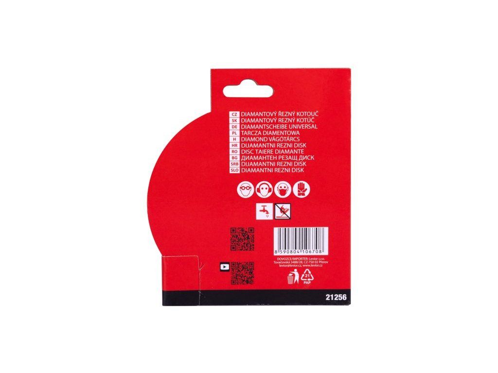 <ul style="color: red"> <li type="square"><span style="color: black"> profesionální diamantový řezný kotouč pro <b>mokré řezání - s chlazením!</b></li> <li type="square"><span style="color: black"> celoobvodové provedení, <b>síla kotouče jen 1 mm</b>, pro rychlé, přesné a čisté řezání tvrdých glazovaných dlažeb a obkladů, gresu, keramiky, porcelánu, apod.</li> <li type="square"><span style="color: black"> zesílená středová část, zpevňuje konstrukci celého kotouče a minimalizuje vibrace</li> </ul>Dodatočné parametre