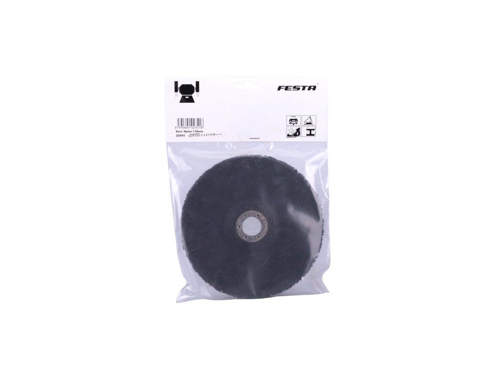 Nylonový brousící kotouč, podložka : sklotextilie, druh zrna: karbid křemíku / nylon, pojivo : pryskyřice, průměr : 178 mm, použití : odstranění starých nátěrů, broušení, čištění, balení : blistr s eurootvorem.Dodatočné parametre