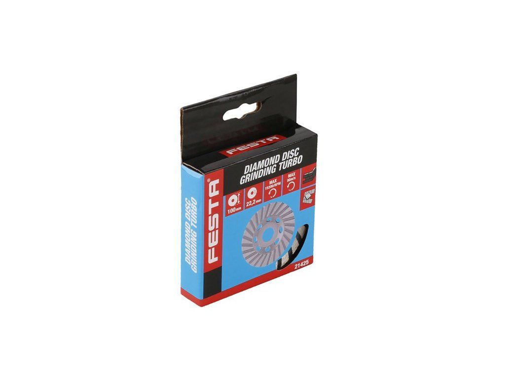 Brusný diamantový kotouč FESTA turbo, robustní nosný talíř je z pevné slitiny, speciální konstrukce uchycení diamantových segmentů k nosnému disku kotouče, vysoký obsah diamantového prachu v segmentech, použití : pro suché broušení mramoru, žuly, cihel, zdiva, přírodního i umělého kamene, obkladů, dlažeb..., lamelové provedení je vhodné pro jemné dobrušování, rozměry : uvedeny v názvu výrobku, balení : papírový box s eurootvorem. <ul style="color: red"> <li type="square"><a href="https://www.youtube.com/watch?v=Gu1sL6isc6E">Instruktážní video</a></li> </ul>Dodatočné parametre