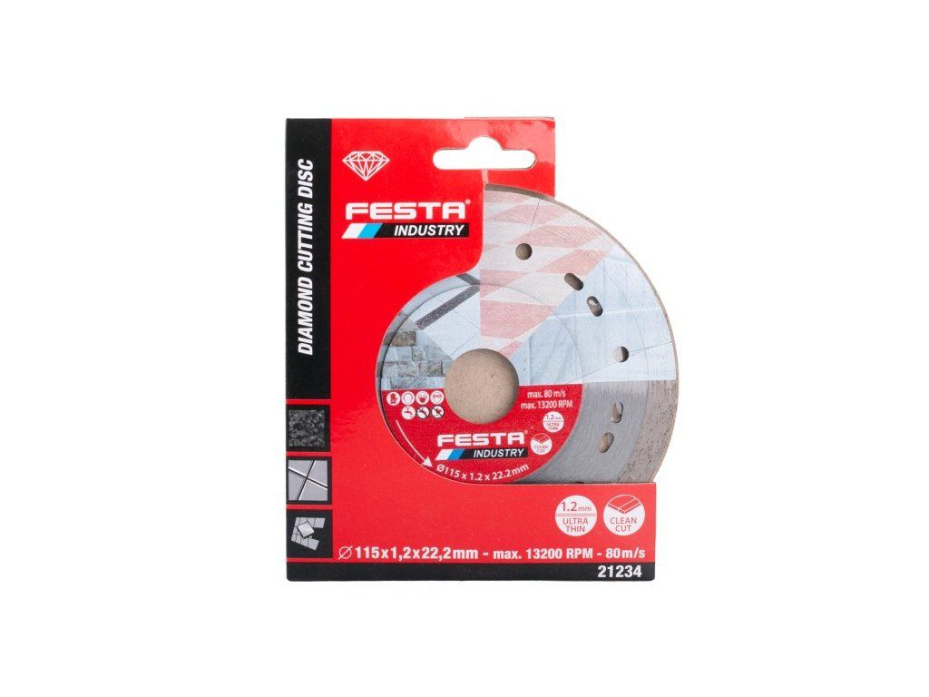 Kotúč diamantový FESTA INDUSTRY rezný plný 115x1.2x22.2mm
