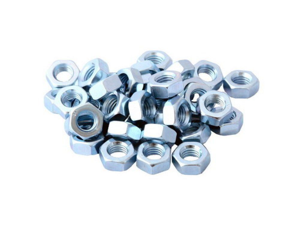 Šestihranná matice vyrobena z konstrukční oceli dle DIN 934 , žárově zinkováno pro zvýšení životnosti.