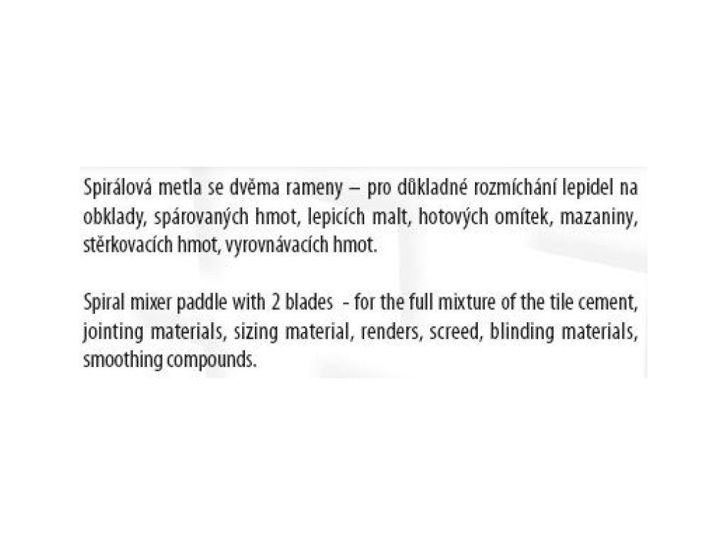 Míchadlo s kruhem ( metla ), pozinkované, rozměr : 100 x 500 mm - SDS+, použití : pro důkladné rozmíchání lepidel na obklady, spárovaných hmot, lepících malt, hotových omítek, mazaniny, stěrkovacích hmot, vyrovnávacích hmot.Dodatočné parametre