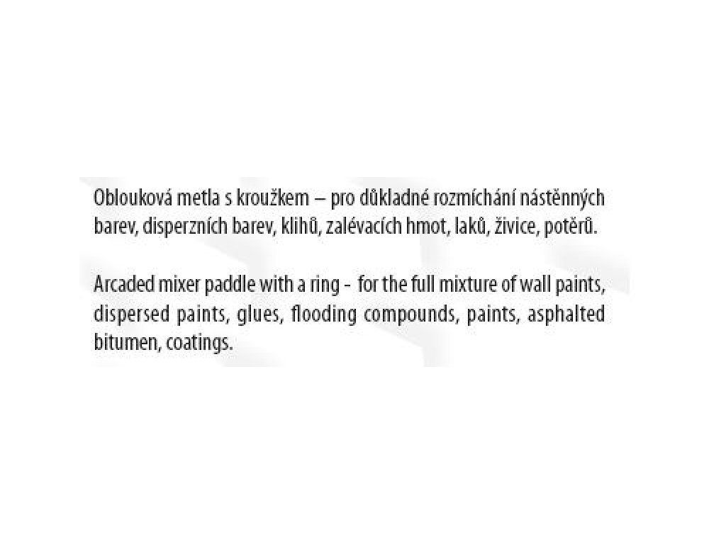 <!DOCTYPE HTML PUBLIC "-//W3C//DTD HTML 4.0 Transitional//EN"> <HTML><HEAD> <META content="text/html; charset=UTF-8" http-equiv=Content-Type> <STYLE type=text/css>body, p { font-family: Tahoma, sans-serif;font-size: 10pt; }pre { font-family: monospace; font-size: 9pt; }h1, h2, h3 { font-family: serif; }</STYLE> <META name=GENERATOR content="MSHTML 11.00.10570.1001"></HEAD> <BODY>Míchadlo s kruhem (metla ), pozinkované, rozměr: 60 x 400 mm - šestihran, použití : pro rozmíchání nástěnných barev, disperzních barev, klihů, zalévacích hmot, laků, živice, potěrů.</BODY></HTML>Dodatočné parametre