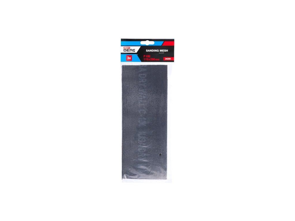 Brusná mřížka 115 x 290 mm, zrnitost 100, 3ks/sada. s eurootvorem , nosná tkanina ze skelných vláken, pryskyřicí přilepena brousicí zrna karbidu křemíku nanšena antistaticky, vhodné pro broušení sadrokartonových spárovacích hmot, i dalších materiálů, výhoda mřížkové struktury proti běžným brousicím papírům spočívá v tom, že se nezanáší odbroušeným materiálem.Dodatočné parametre