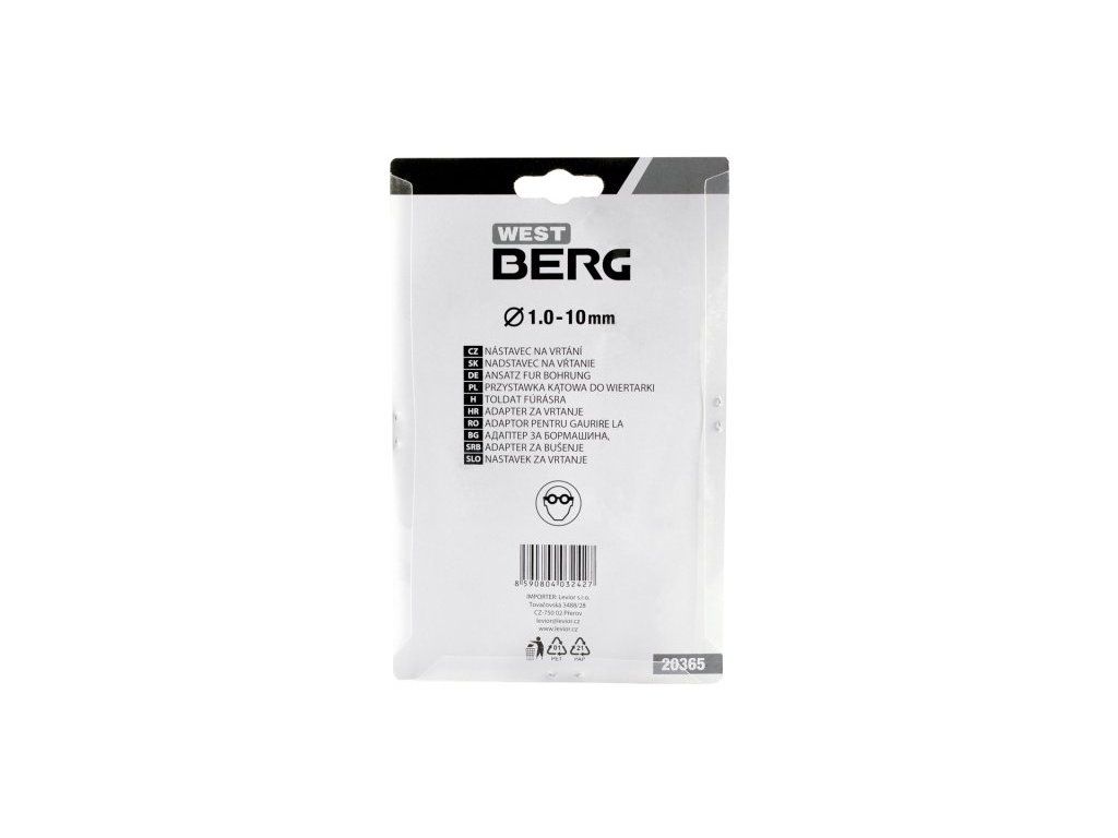 Nástavec na vrtačku pro vrtání pod úhlem 90°, prům. 1,5-10mm, stopky 10mm, max.upínací sklíčidla 10mm. Tělo ABS plast, převodové soukolí kov. Převodový poměr 1:1.Dodatočné parametre