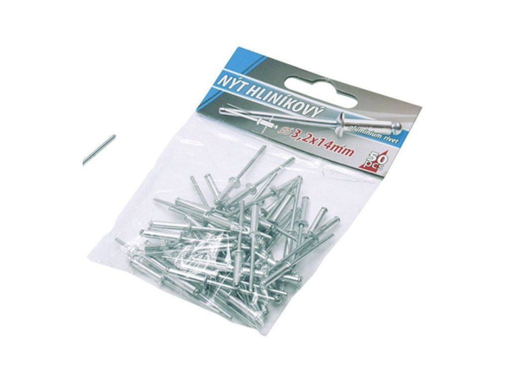 Klasické trhací slepé aluminiové nýty průměr 3,2 mm délka 12mm v malém balení 50 kusů, vhodné pro malospotřebitele. <li type="square"><a href="https://www.youtube.com/watch?v=dYWfjB9_Jqk">Instruktážní video</a></li> <li type="square"><a href="https://www.youtube.com/watch?v=F_FR-N04_Fw&t=29s">Instruktážní video</a></li> </ul>Dodatočné parametre