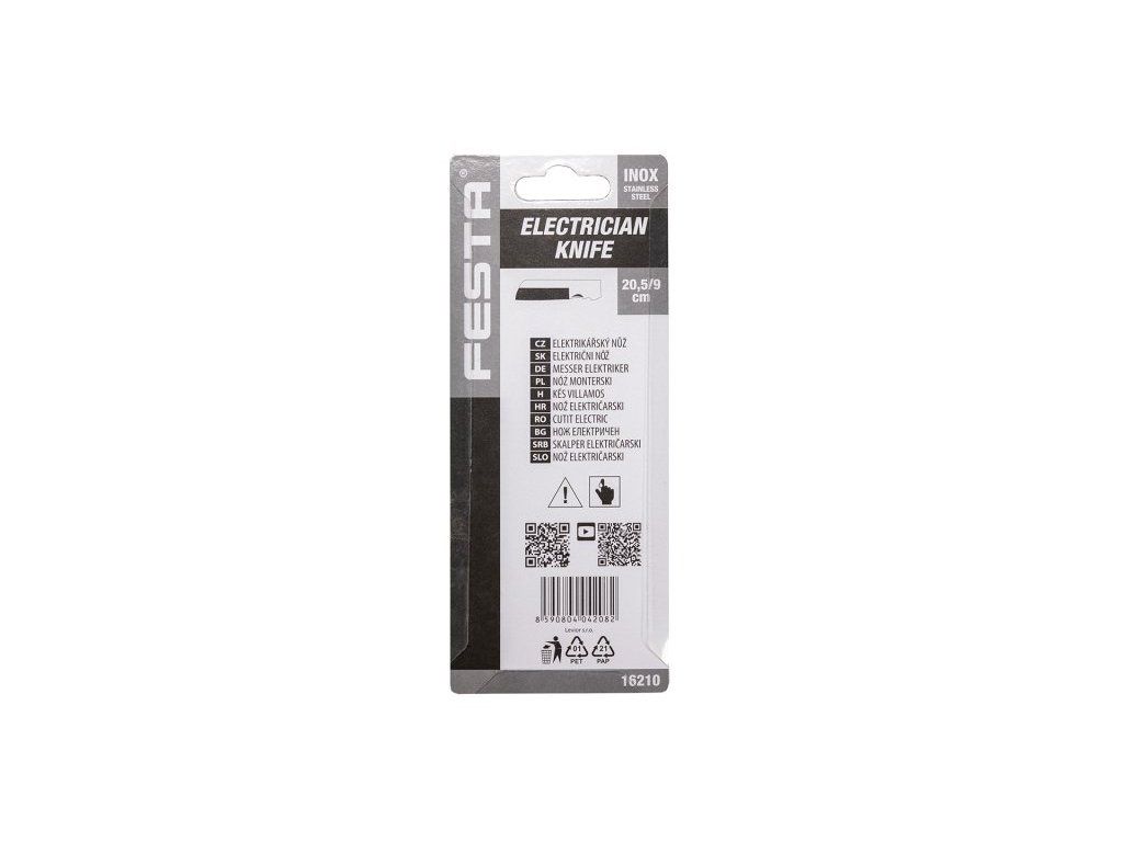 Zavírací elektrikářský nůž s rovnou čepelí, silná čepel se dvojím ostřím usnadňujícím odizolovávání vodičů, pogumovaná ergonomická rukojeť, blistr.Dodatočné parametre
