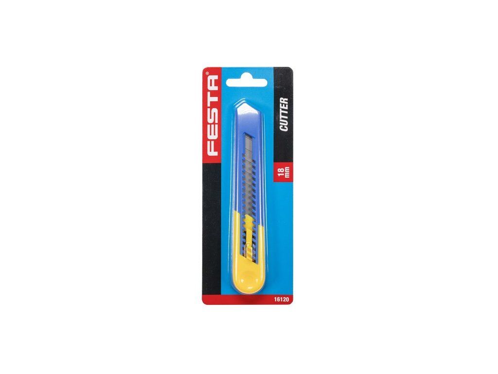Odlamovací nůž FESTA 18mm, kvalitní materiály, automatická aretace s pojistkou, do nože lze umístit až 2 náhradní břity, blistr.Dodatočné parametre