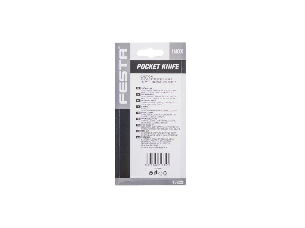 Kapesní zavírací nůž s pojistkou proti samovolnému zavření čepele, plastová rukojeť, jednoruční otevírání, čepel z nerezové oceli, kvalitní nýtování, délka čepele 120mm, blistr.Dodatočné parametre