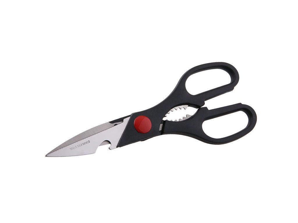 <ul style="color: red"> <li type="square"><span style="color: black"> nůžky s nerezovým ostřím 70 mm</li> <li type="square"><span style="color: black"> v čepeli nůžek otvírák</li> <li type="square"><span style="color: black"> poplastované ergonomické rukojeti pro vyšší komfort při práci</li> <li type="square"><span style="color: black"> v rukojeti zubové čelisti pro variabilní použití, např. otevírání pet lahví, drcení skořápek ořechů atd.</li> <li type="square"><span style="color: black"> univerzální použití na pvc, kůži, lepenku, v domácnosti i profesionální práci</li> </ul>Dodatočné parametre