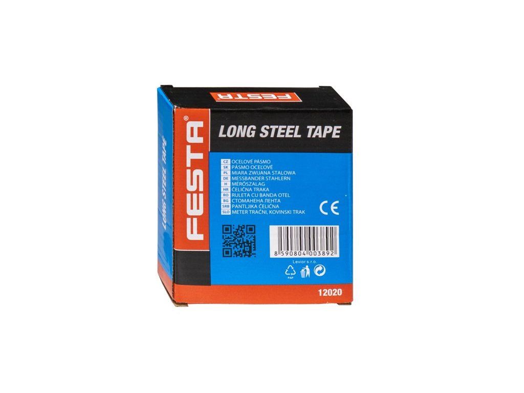 Kvalitní a přesné ocelové pásmo, kalená páska s očkem, CE certifikát - vhodné ke kalibraci, sklopná navíjecí ručka, poutko.