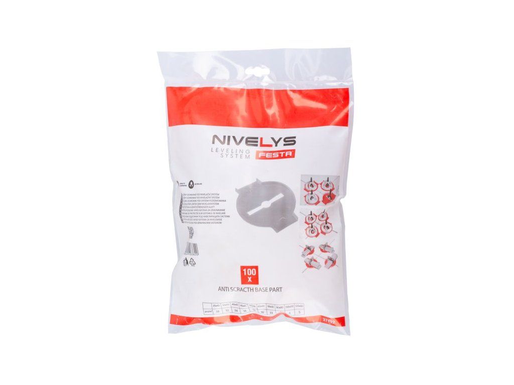 <ul style="color: red"> <li type="square"><span style="color: black"> ochranné podložky pro nivelační systémy FESTA NIVELYS</li> <li type="square"><span style="color: black"> tvarem uzpůsobeny pro univerzální použití - klínovou i kloboučkovou variantu nivelace</li> <li type="square"><span style="color: black"> <b>podložky zabraňují při nivelaci dlažby nebo obkladu - zejména u lesklých dekorů - poškrábání</b>, ke kterému dochácí při tření klínu nebo kloboučku v okamžiku kontaktu s dlaždicí v prašném prostředí stavby</li> </ul>Dodatočné parametre
