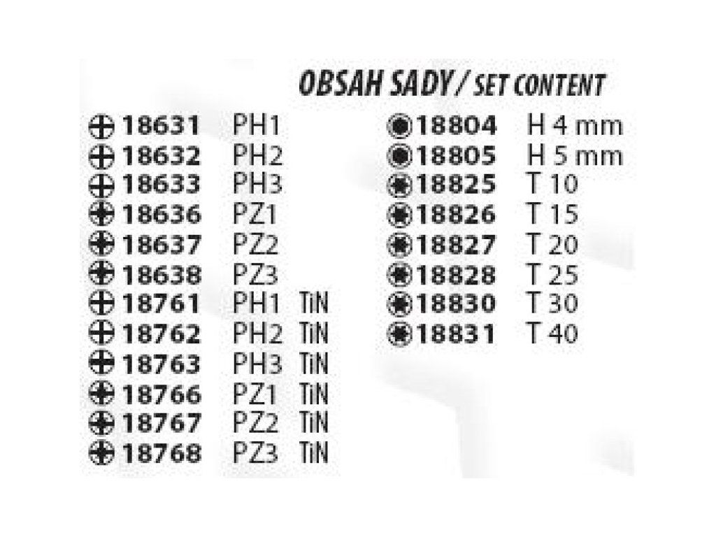 Od světového výrobce STAHLBERG s mnohaletými zkušenostmi za použití nejnovějších technologií. Praktická prodejní sada bitů, které jsou vyrobeny přesným kováním(zvyšuje pevnost až o 20% oproti obráběným) z chromvanadiové oceli S2 (vynikají houževnatostí), tvrzené na 61-62 HRC. Na pracovních plochách jsou diamantová zrna nebo drážky jako nejúčinnější ochrana proti vysmeknutí ze záběru. Zlatá, titan-nitridová vrstva (TiN) chrání bit proti otěru. Sada obsahuje 20 druhů po 10 kusech, cena je redukováva o 5% a plastový box je bezplatný dárek.Dodatočné parametre