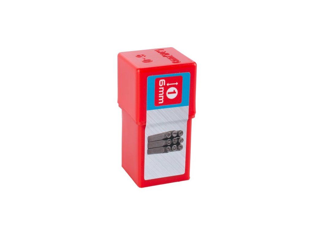 Ruční raznice - číslice, kvalitní uhlíková ocel - pevnost do 800 N/mm2, zakalené hroty - vysokká tvrdost, rozměry: výška písmen - 6 mm, balení: plastový box.Dodatočné parametre