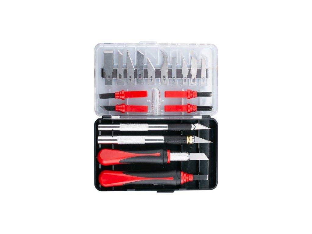 <ul style="color: red"> <li type="square"><span style="color: black"> sada sklapelů / nožů různých tvarů pro široké spektrum využití - modelářství, řezbářství, tvoření dekorací, precizní vyřezávání, apod.</li> <li type="square"><span style="color: black"> 18 sklapelů, 4 rukojeti</li> <li type="square"><span style="color: black"> praktický plastový box pro bezpečné a přehledné uložení</li> </li>Dodatočné parametre