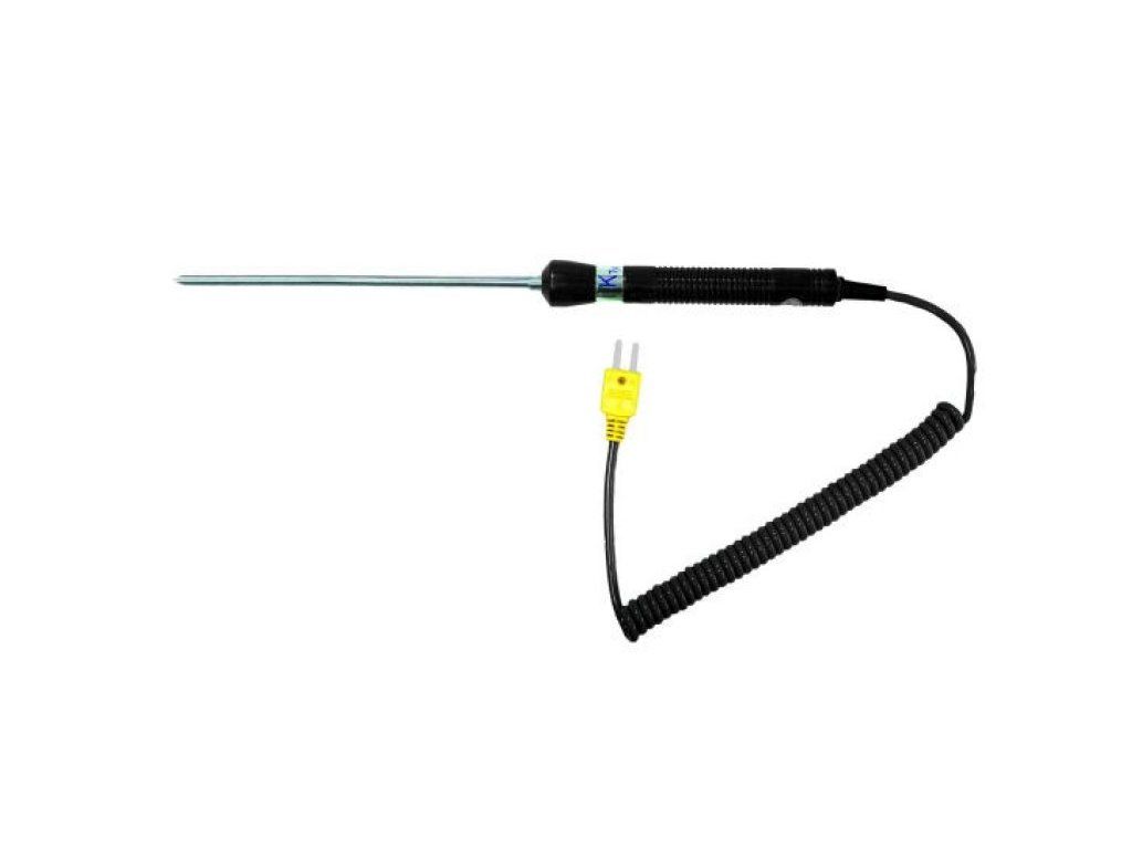 Čidlo teploty typu K pro měření teploty vzduchu a plynu. Tepelně odolná rukojeť. Snímač teploty chráněný kovovým krytem ( prům. 6,5mm ). Délka snímače: 165mm. Rozsah měření: -50 °C … 800 °C, třída přesnosti 2. Pouze pr ThermoMaster a ThermoSpot Vision.Dodatočné parametre