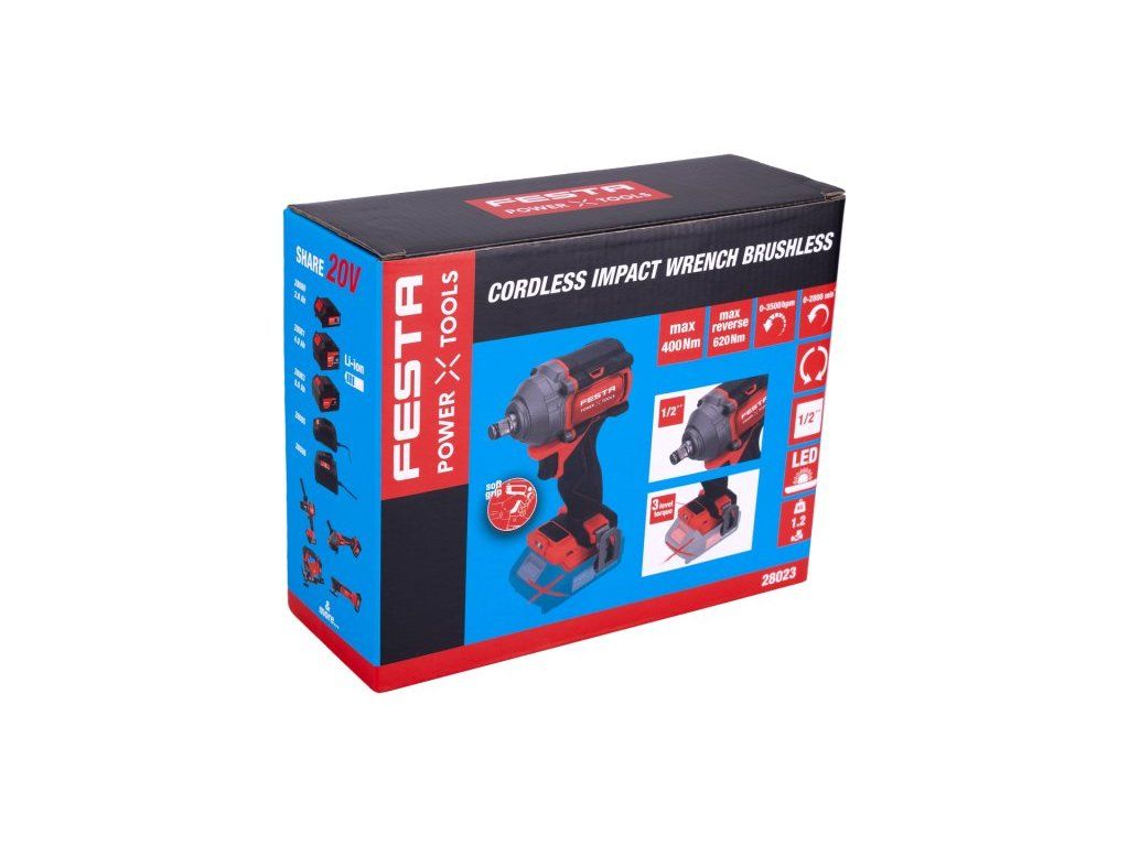 Utahovák AKU rázový FESTA 1/2 400/620Nm BRUSHLESS SHARE20V (bez baterie a nabíječky)