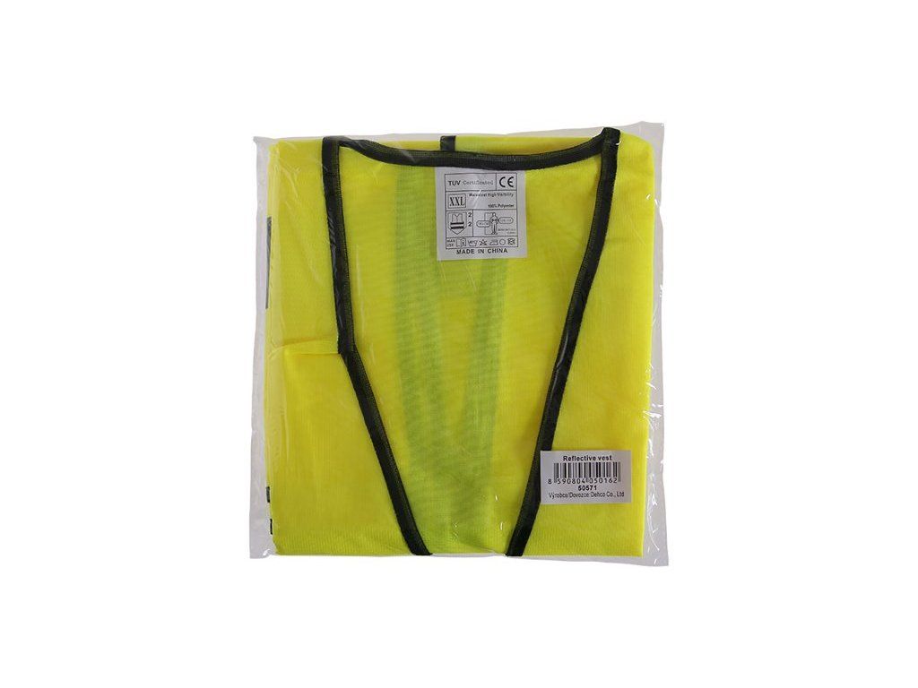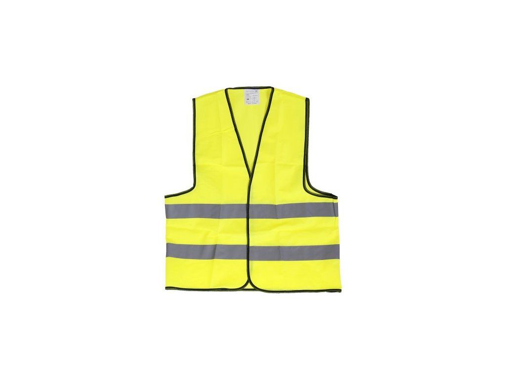 Žlutá polyesterová výstražná vesta, 2 horizontální reflexní pruhy, zapínání na suchý zip, velikost UNI, CE EN 471.Dodatočné parametre