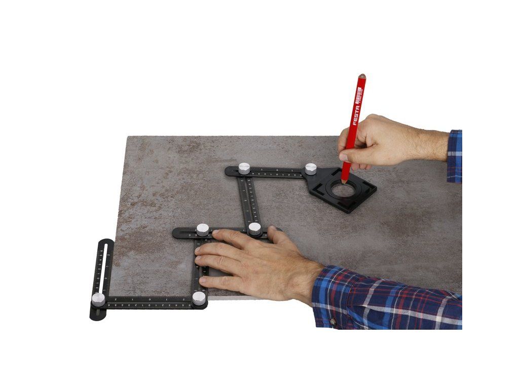 <ul style="color: red"> <li type="square"><span style="color: black"> víceučelové skládací pravítko - šablona</li> <li type="square"><span style="color: black"> pro značení, přenos a vytváření speciálních tvarů, úhlů nebo otvorů pro obkladače, podlaháře a jiné profese nejen ve stavebnictví</li> <li type="square"><span style="color: black"> 6 kovových nastavitelných ramen s centimetrovou a palcovou stupnicí</li> <li type="square"><span style="color: black"> masivní aretační šrouby pro přesné a jednoduché nastavení požadovaného tvaru</li> <li type="square"><span style="color: black"> průměry pro značrní otvorů 26, 41 a 46 mm</li> </ul>Dodatočné parametre