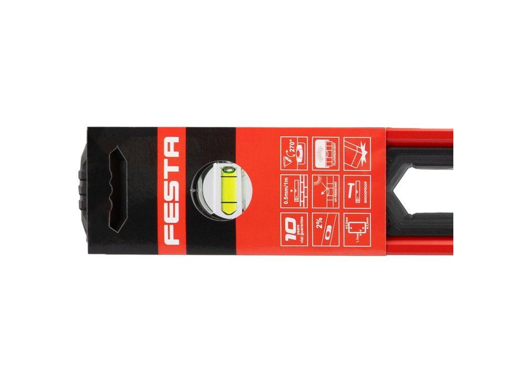 <ul style="color: red"> <li type="square"><span style="color: black"> profesionální vodováha <b>přesnost 0,5 mm / m - každý kus elektronicky testován</b></li> <li type="square"><span style="color: black"> hliníkový profilovaný a vyztužený profil <b>síla stěny 2,2 mm</b></li> <li type="square"><span style="color: black"> 3 libely z akrylového skla <b>nárazuvzdorné</b> -<ul style="color: red"> <li type="disc"><span style="color: black"> <b>1 horizontální válcová* se sklonovými ryskami 1 a 2%</b> <i><b>(+válcový tvar libely, oproti kvádrové, zajišťuje skvělou viditelnost ze všech úhlů pohledu</b></i></li> <li type="disc"><span style="color: black"> vertikální</li> <li type="disc"><span style="color: black"> 45°</ul> <li type="square"><span style="color: black"> <b>UV stabilní a fluorescenční kapalina v libelách pro lepší viditelnost</b></li> <li type="square"><span style="color: black"> pogumované <b>nárazuvzdorné koncovky</b> pro větší odolnost při případných pádech</li> <li type="square"><span style="color: black"> 2 praktická madla - <b>lepší manipulace s vodováhou při měření</b></li> <li type="square"><span style="color: black"> <b>záruka na libely 10 let</b></li> </ul> <ul style="color: red"> <li type="square"><a href="https://www.youtube.com/watch?v=C5q3i-BQ4o8">Instruktážní video</a></li> </ul>Dodatočné parametre