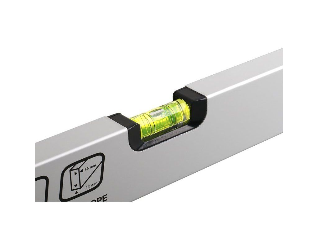 <ul style="color: red"> <li type="square"><span style="color: black"> <b>inovovaná horizontální válcová libela</b> - snadná viditelnost ze všech úhlů pohledu</li> <li type="square"><span style="color: black"> dvojité kroužky v libele - <b>vnější kroužky pro sklon 2%</b></li> <li type="square"><span style="color: black"> výraznější fluorescenční kapalina pro lepší viditelnost bubliny na slunci i v horších světelných podmínkách</li> <li type="square"><span style="color: black"> vodováha se dvěma libelami <b>přesnost 0,5 mm/m = 0,0285°</b></li> <li type="square"><span style="color: black"> tloušťka stěny ALU profilu 1,5 mm, eloxovaný otěruvzdorný povrch</li> <li type="square"><span style="color: black"> vodováha je odolná proti provozním nárazům</li> <li type="square"><span style="color: black"> <b>10 let záruka na libely, KAŽDÝ KUS ELEKTRONICKY TESTOVÁN</b></li> </ul>Dodatočné parametre