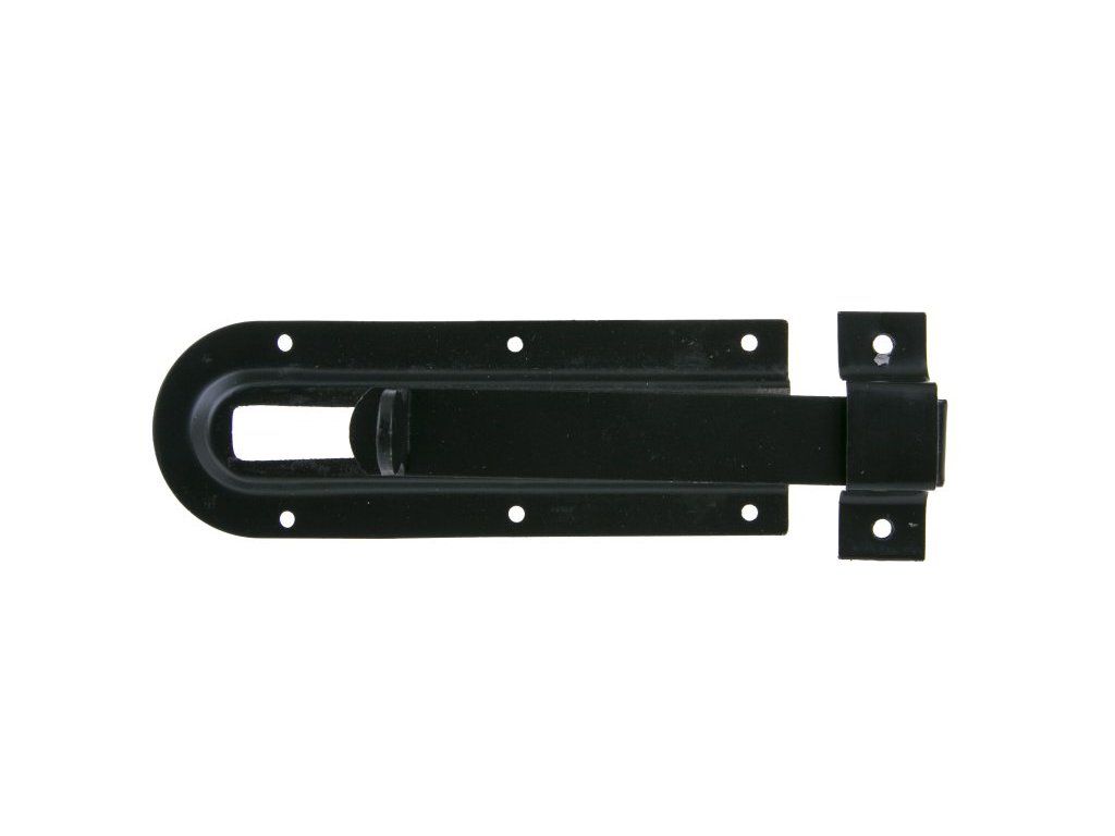 Kovová zástrč s plochým třmenem. Lze využít na uzavírání a zajišťování dveří, dvířek, šuplíků.
