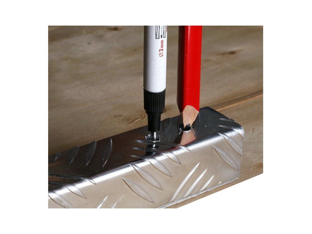<ul style="color: red"> <li type="square"><span style="color: black"> permanentní hloubkový značkovač - černý</li> <li type="square"><span style="color: black"> <b>průměru hrotu jen 3 mm</b>, umožňuje značení malých průměrů skrz až 30 mm silných materiálech</li> <li type="square"><span style="color: black"> použitelný na většinu povrchů</li> <li type="square"><span style="color: black"> <b>síla hrotu 3 mm</b></li> </ul>Dodatočné parametre