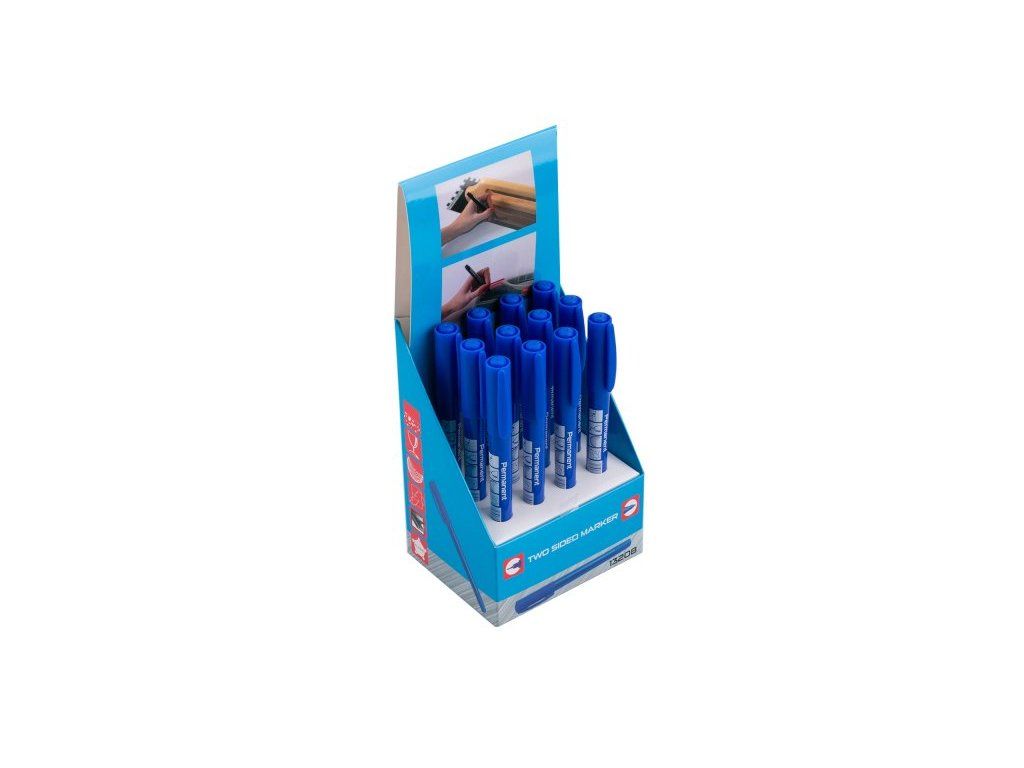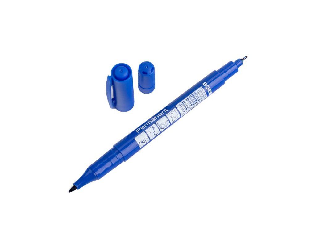 Značkovač permanentný (fix) obojstranný modrý 140mm