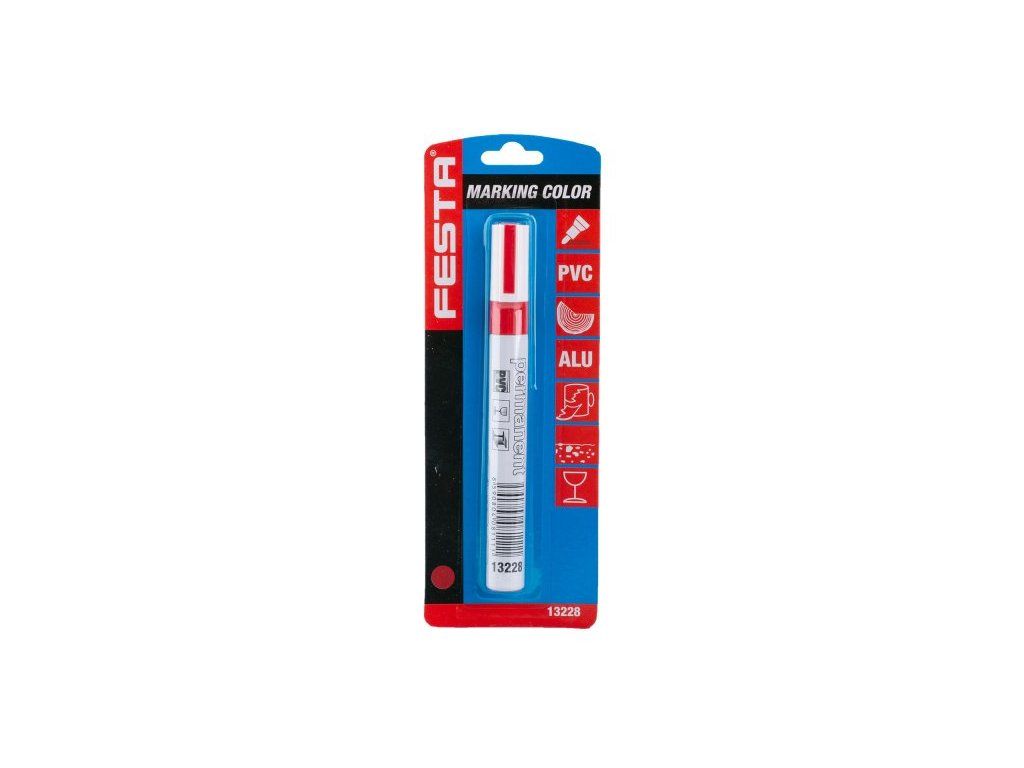 Speciální značkovací barva v hliníkovém pouzdře, síla hrotu 4 mm - červený, popisy železných konstrukcí, skla, plastů, černých strečových folií a tmavých podkladů, max.80°C.Dodatočné parametre