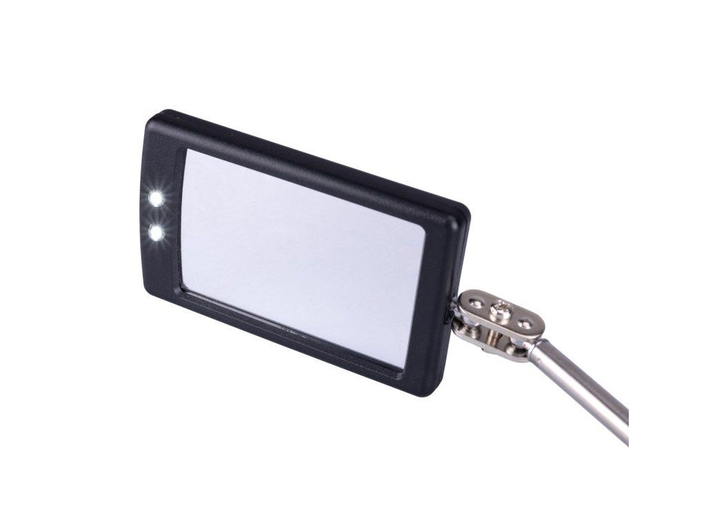 <ul style="color: red"> <li type="square"><span style="color: black"> zrcátko na teleskopické násadě se dvěma LEDkami</li> <li type="square"><span style="color: black"> rozsah délky násady 290 - 876 mm, rozměr zrcátka 50 x 30 mm</li> <li type="square"><span style="color: black"> teleskopicá část z nerezové oceli, ergonomická pogumovaná rukojeť</li> <li type="square"><span style="color: black"> napájení LED osvětlení 2 x baterie CR 2032(součástí balení)</li> </ul>Dodatočné parametre